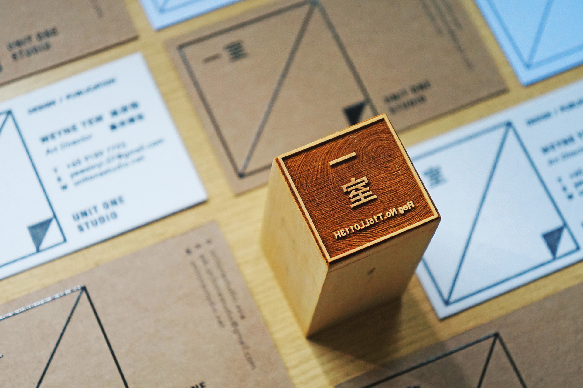Our studio branding 'chop' and business cards. A wooden stamp. We follow the traditional Chinese way of stamping. Stamp and ink with the red clay.